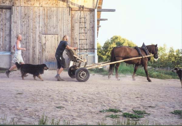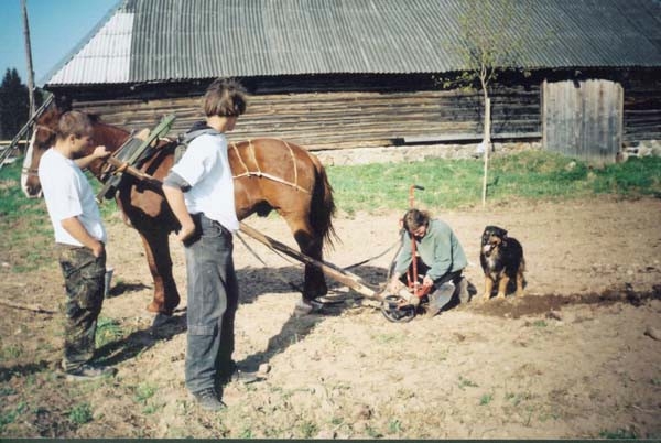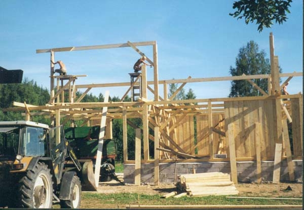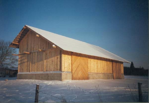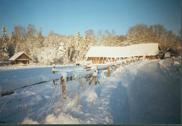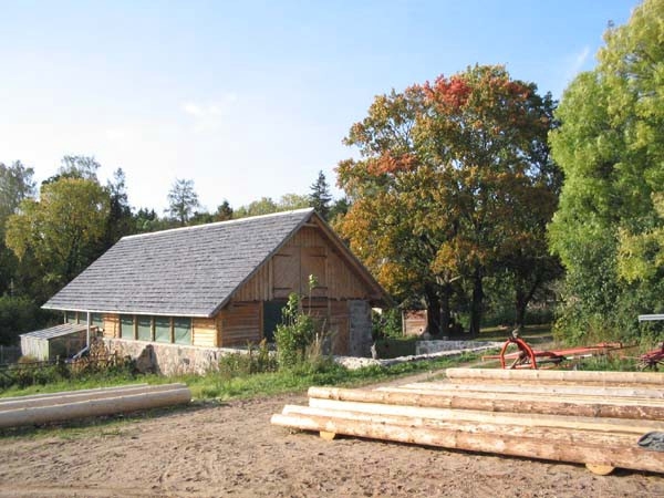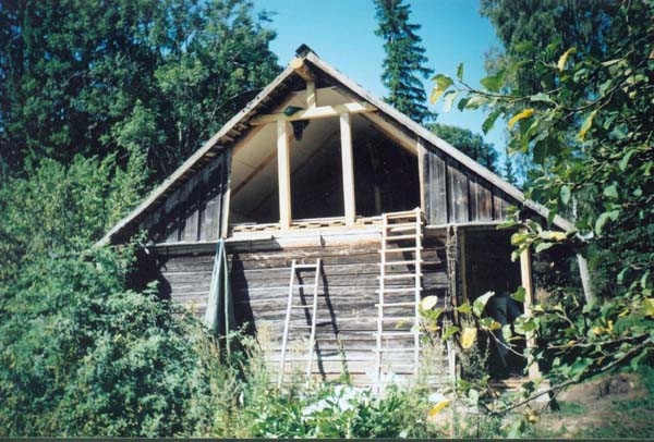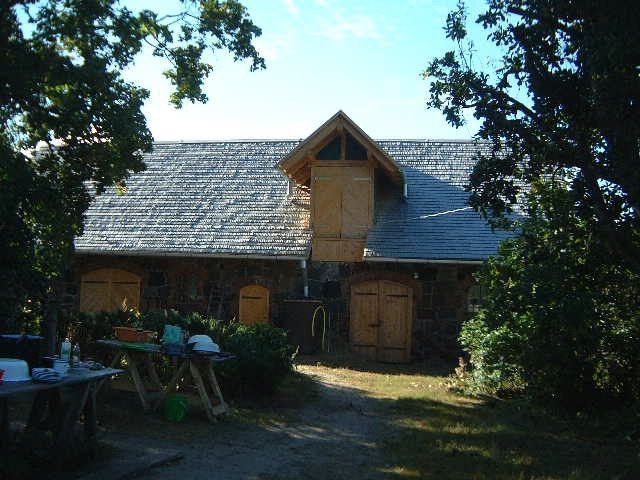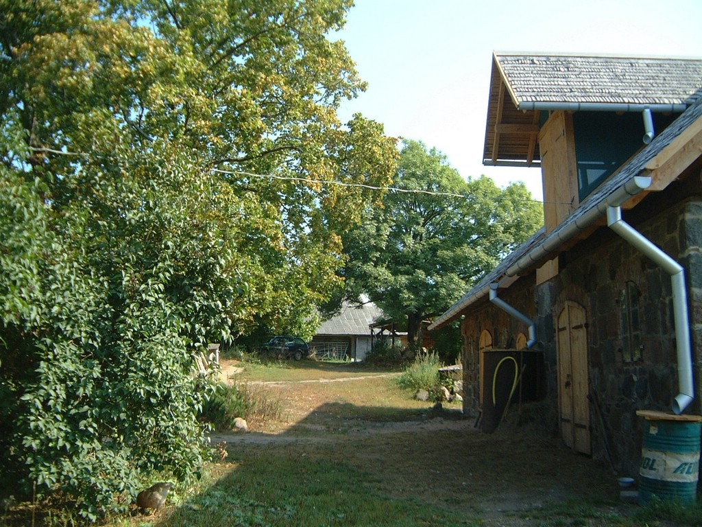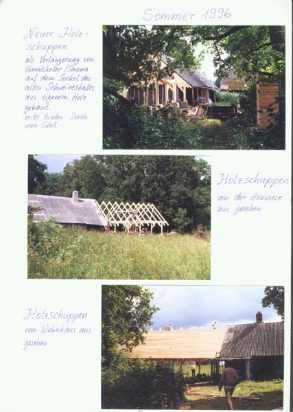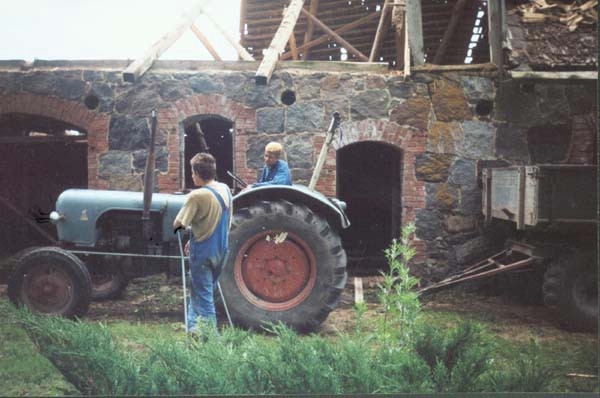 Mit Jugendlichen und Freunden wurde 1996 begonnen, zunächst einmal die alten Gebäude zu sanieren. Diese sind aus Holz in Blockbauweise errichtet, die Fundamente und einige Mauern sind aus Granit. Diese Arbeit ist noch nicht abgeschlossen. Parallel dazu wurden die ersten Felder wieder naturnah bewirtschaftet, ein Hausgarten wurde angelegt und es wurde angefangen, den Wald zu pflegen. Inzwischen gibt es eine Grundausstattung (meist alter) landwirtschaftlicher Geräte, dazu gehören auch 2 Traktoren; außerdem Maschinen und Werkzeuge, vor allem für die Holzbearbeitung. Alles Holz, das auf dem Hof als Brennmaterial oder zum Bauen benutzt wird, stammt aus dem eigenen Wald. (Es wird mit Holz geheizt, es gibt elektrischen Strom. Das Wasser wird aus einem schönen alten Brunnen geschöpft.) Im Sommer 1999 ist eine große Mehrzweckhalle gebaut worden. Hier ist nun eine Schreinerei, eine Holzwerkstatt und eine Werkstatt zur Reparatur der Maschinen untergebracht. Außerdem ist noch Platz für landwirtschaftliches Gerät. Zur Zeit bewohnen 3 Ammenkühe mit Kälbern, 2 Rinder und ein Bulle, 1 Pferd, 3 Ziegen mit ihren Kitzen und ein Bock und ca. 40 Hühner und Enten die Ställe. Außerdem gibt es 3 Hunde. Im Jahr 2001 ist ein großer Teich auf dem Hofgelände angelegt und ein großer Hühner- und Ziegenstall ist neu errichtet worden. Seitdem ist noch ein kleines Wohnhaus und der große Stall wieder aufgebaut worden. Die Zivildienstleistenden haben sich das Dach des Vorratshauses ausgebaut und eine neue Sauna mit Wohnbereich in Blockbauweise ist fast fertig.