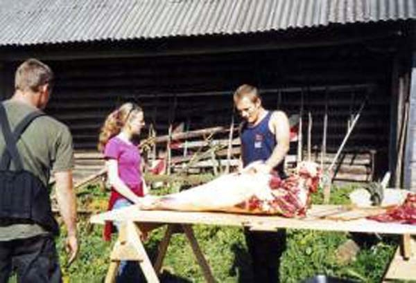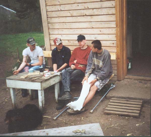 Das Ganze ist ein Gemeinschaftsprojekt. In den letzten Jahren hat sich ein ständig wachsender Kreis der Freunde von Naatsaku gebildet. Dazu gehören auch viele Jugendliche. Sie haben für längere oder kürzere Zeit auf dem Hof gelebt und viele, viele Stunden Arbeit investiert. Allein, zu zweit oder in kleinen Gruppen haben sie mehrere Wochen oder auch Monate auf Naatsaku gelebt. Sie haben die Tiere versorgt, kleinere oder größere Projekte in Angriff genommen, manche haben auch einfach die Natur und die Ruhe dort genossen. Zur Zeit lebt auf Naatsaku das Ehepaar von Schwanenflügel (letztlich verantwortlich für das, was auf dem Hof geschieht), ihr ältester Sohn Martin, meist zwei „Freiwillige“ (Anderer Dienst im Ausland (eine Art (“Ersatzzivildienst“), Freiwilliges Soziales Jahr, Praktikum im Ausland) und weitere junge Menschen, die Freude daran haben, dort zu leben und Naatsaku immer schöner zu machen. Außerdem kommen immer wieder Praktikanten von verschiedenen Schulen und Jugendliche, die in ihrer Heimat (meist ist das Deutschland) irgendwelche Probleme haben und das Leben hier als Chance zu einer Neuorientierung für sich selbst nutzen wollen. Meist sind wir etwa 8 hungrige Esser, die sich zu den Mahlzeiten um den Tisch versammeln, im Sommer oft mehr, im Winter auch mal weniger.